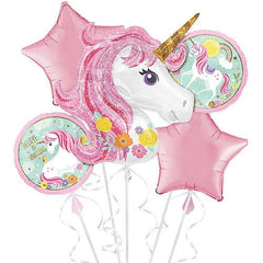 This banner kit features a jumbo letter banner and spells out "Happy Birthday" in colourful letters with different images of unicorn. Separating the two words is a round medallion with a blank space to add in the age of your little birthday girl. Hang these card stock unicorn letters banner at the entrance to your little one's unicorn themed birthday party. Complete the look of your unicorn party with our other party range from Unicorn party supplies in Australia.
